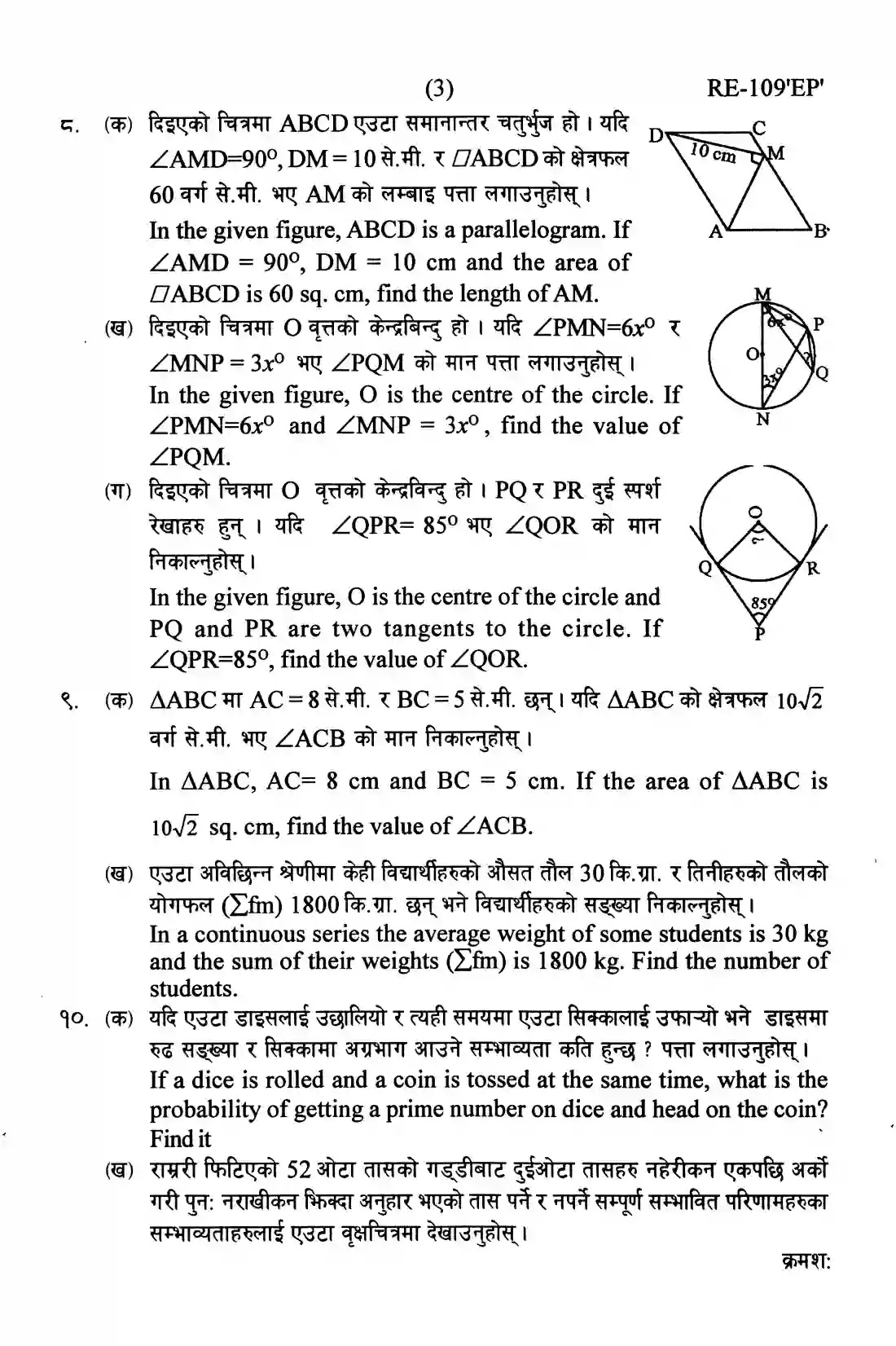 👉Download SEE Compulsory Maths Model Questions with solution for Bagmati Pradesh in pdf, RE 109-'CP', 2075/2019.